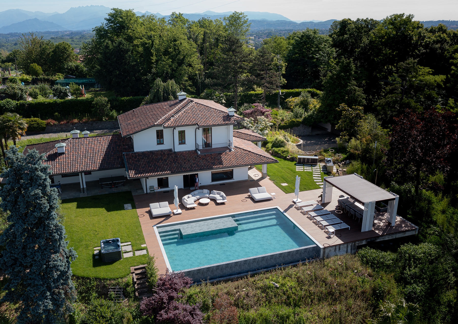 Большая вилла в самом сердце Брианцы, полностью утопающая в зелени. Это был уже существующий дом, который долгие годы был заброшен, и новые владельцы решили его полностью реконструировать, создав загородный дом для роскошного образа жизни.
